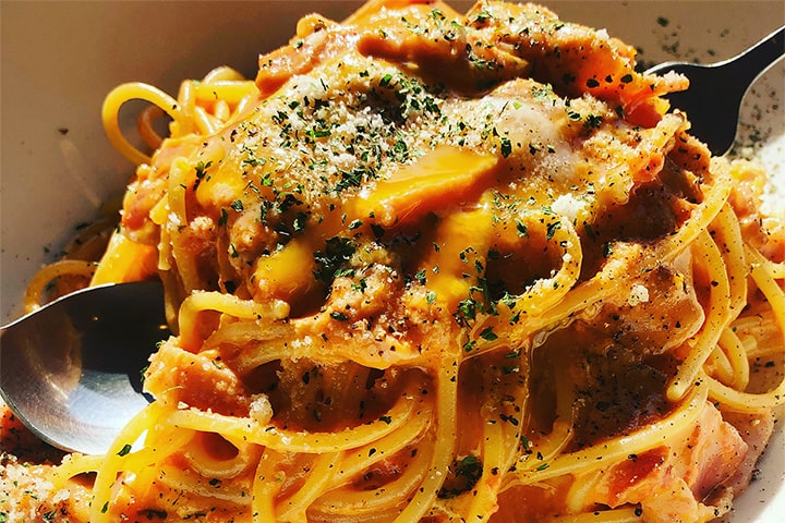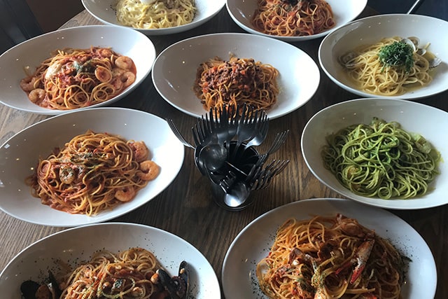 イベリコ豚のベーコンと、濃厚なトマトクリームソースで仕上げた「トマトカルボナーラ」や「クリーミーカルボナーラ」をはじめとする種類豊富なパスタは、すべてテイクアウトも可能です。