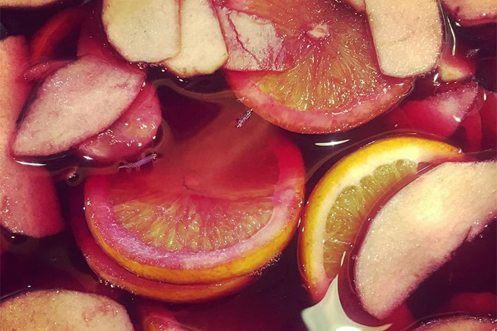 地元のフルーツを赤ワインに48時間漬けたこだわりのサングリア。